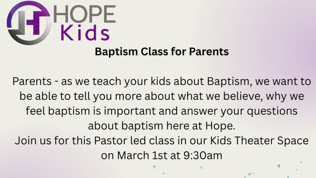 Baptism Class for Parents