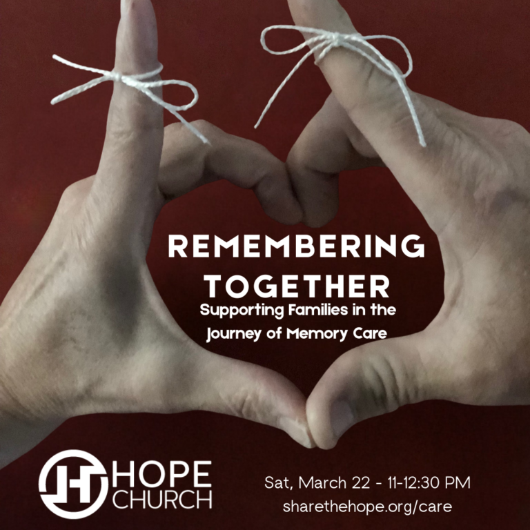 Are you giving care to a parent, spouse, or loved one facing memory loss? You don’t have to walk this road alone. Gather with others to find hope and community in this difficult season. Sunday March 22, 11AM.